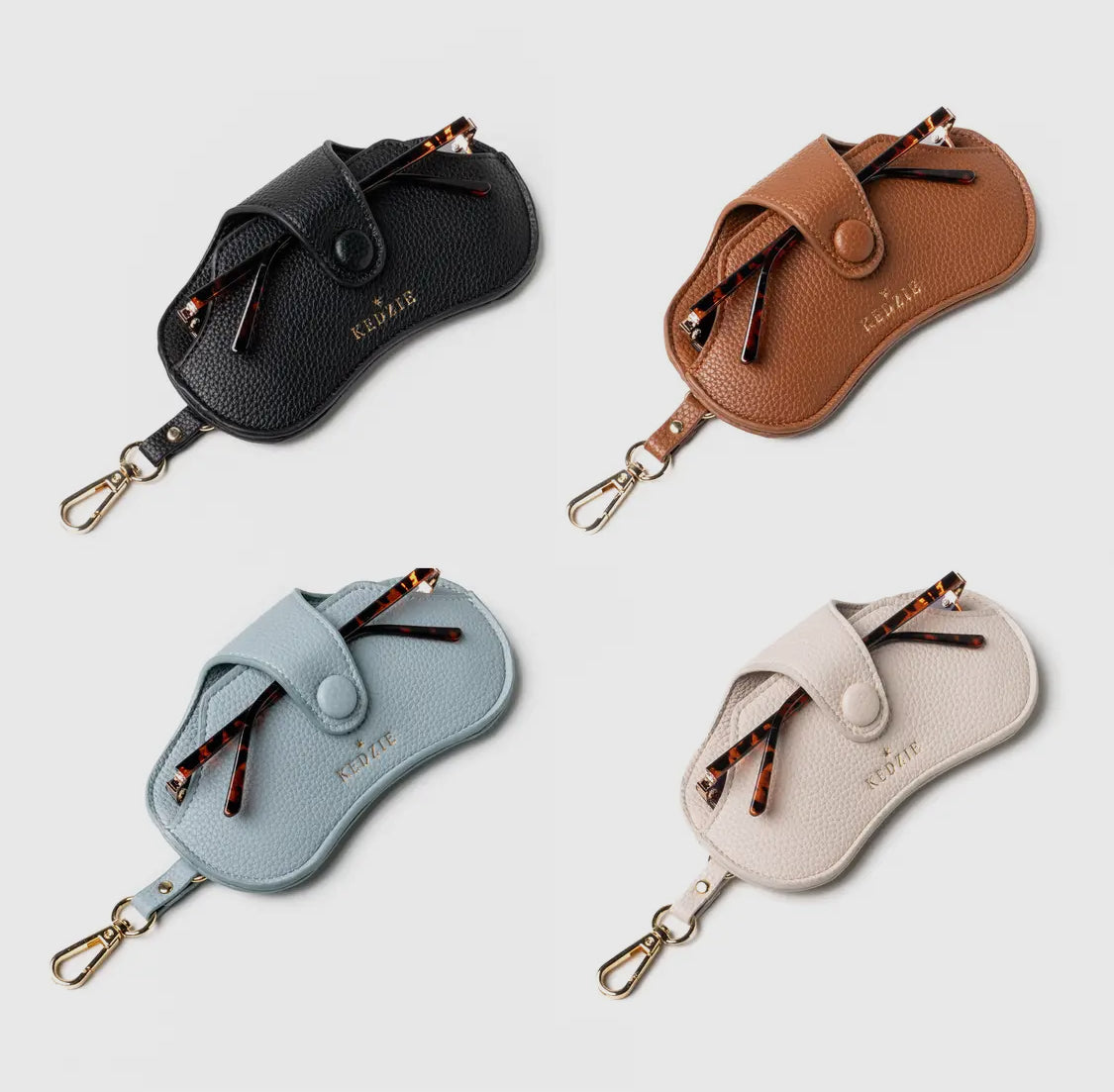 Protect your eyewear on the go with our buttery soft vegan leather cases! These convenient cases can be clipped to any bag for easy access and storage. Plus, our universal swivel-snap clip ensures a secure closure. Perfect for travel, work, and everyday use! Dimensions: 9" W x 3.5" H x 0.25" D (including clip).